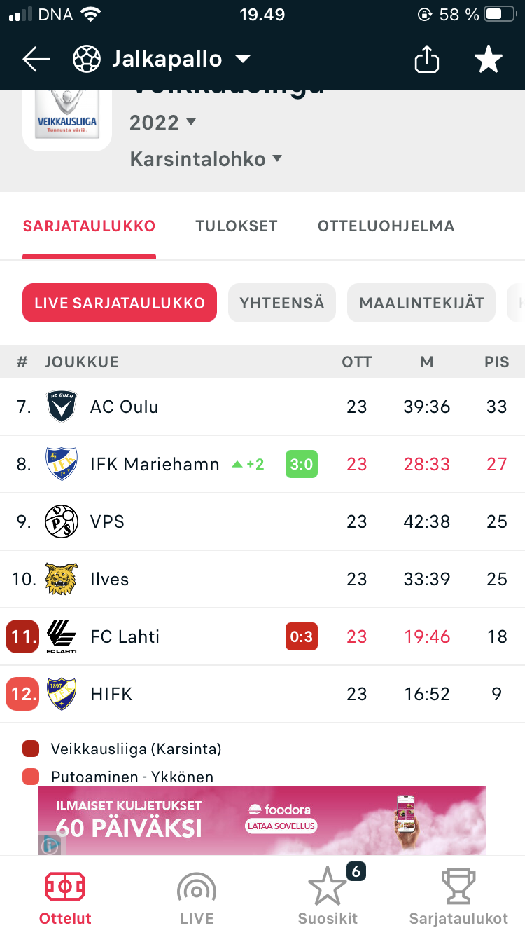 Kaksi parasta pääsee alemmasta sarjasta vielä siis taistelemaan europaikasta, kun molemmat cupin finalistit ovat ylemmässä sarjassa. (cupin voittaja siis saa jo europaikan Liigan kärkikaksikon lisäksi ja jos KuPS on cupin voittaja ja Liigassa kahden joukossa, niin Liigakolmonen saa suoraan europaikan. Europlay-offissa on viisi joukkuetta mukana joista sarjassa paras pääsee suoraan finaaliin) Toki päätavoite on välttää karsijan paikka joka vaanii 6 pinnan päässä (maalieron vuoksi Lahti tarvitsee 7 pinnaa enemmän kuin Ilves jäljellä olevissa kuudessa pelissä). Luultavasti yksikin voitto riittää varmistamaan sarjapaikan, eli ei tässä nyt ainakaan tässä kohdassa hätää ole.