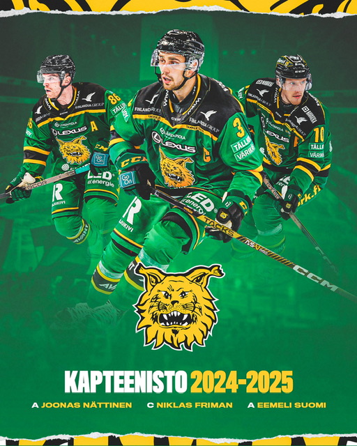 ”Kapteenistokolmikon ohella joukkueessa toimii laajempi kapteenistoryhmä, johon kuuluvat myös puolustajat Otto Latvala, 25, ja Toni Utunen, 24, sekä hyökkääjä Kasper Björkqvist, 27.”