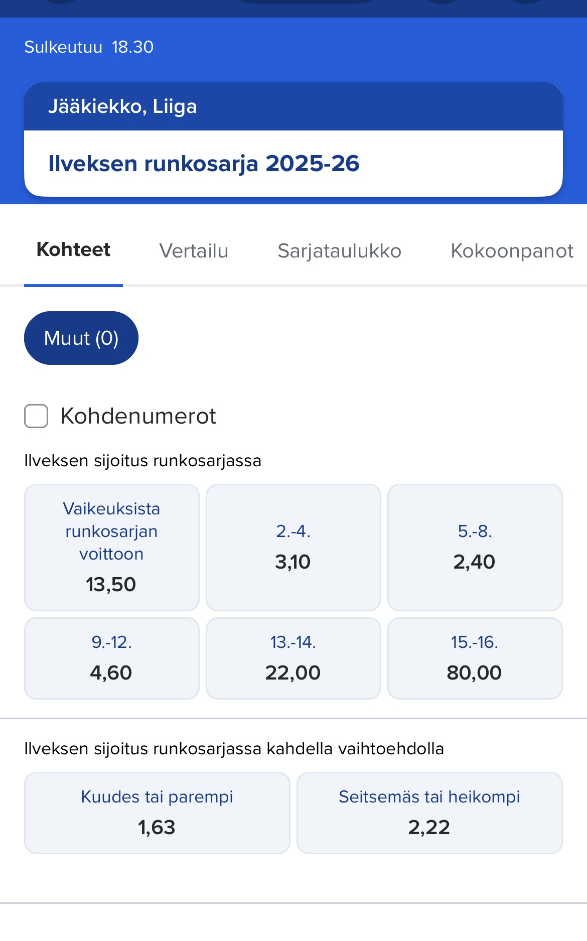 Eli nyt voi veikata Ilveksen runkosarjasijoitusta.