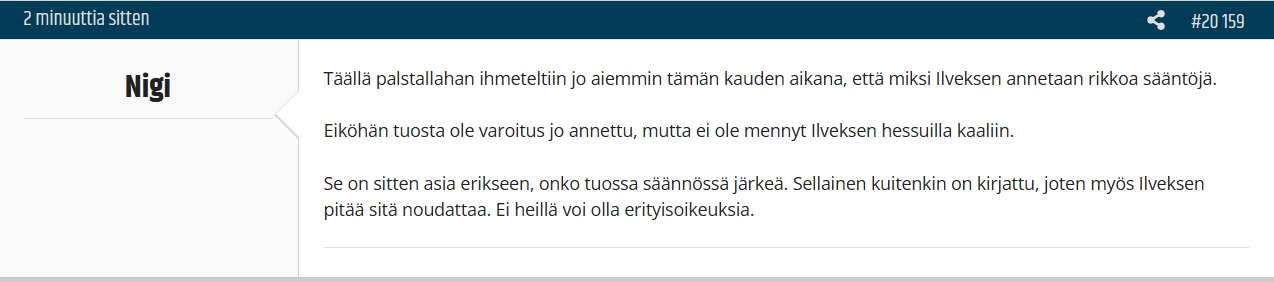 Kevät tuli niin kyseenalaisia tilanteita ei saa pyöritellä? Toki tuo tais pyöriä ainakin viisi kertaa ja zoomattuna. Mutta jos liiga tästä tuomarien arvostelusta alkaa sakottamaan niin ehkä kannattaa katsoa asiassa myös peiliinAntakaa kakkua. Antakaa sakkoa saatana.