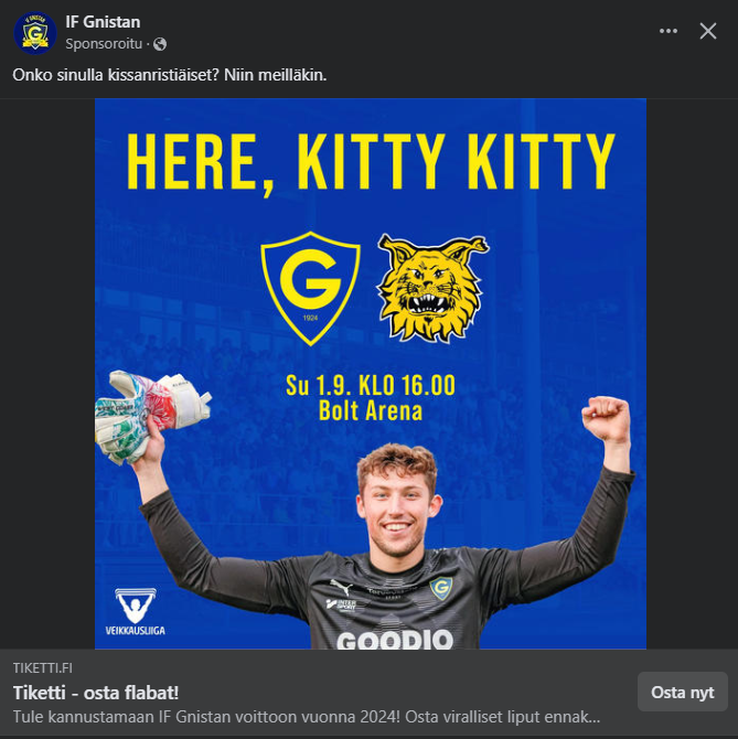 Kyllä Ilves osaa ottaa ilon irti jos kolahtaa Gnistanin omaan nilkkaan tämä mainos.