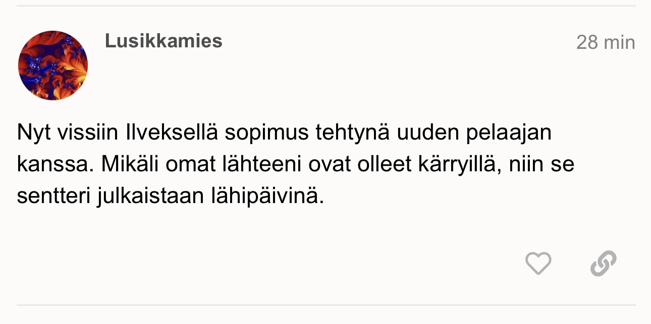 Tämä tuskin on Ruohomaa tai muu tuttu suomalaispelaaja. Niin mä ainakin tulkitsen![]()