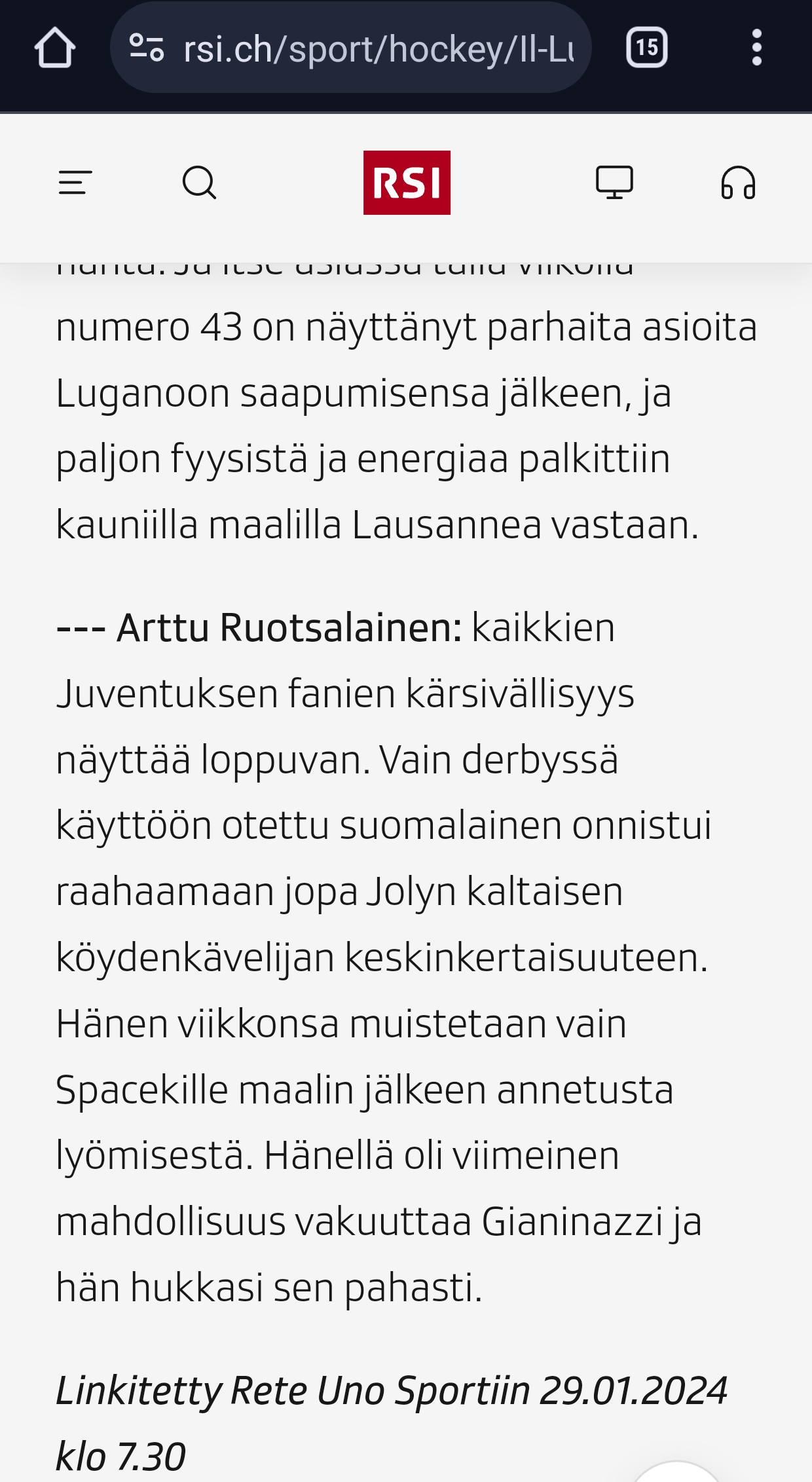 Siellä on radiotelevisione svizzera eli sveitsiläisen yleisradio organisaation johtava eli Sveitsin oma Petteri Sihvonen kritisoinut Arttua. Kyllä tosta kuukkelikääntäjän antamasta käännöksestä nyt jotain ymmärtää sentään. Ilmeisesti köysikävelijä Jolysta tuli keskinkertainen, kun Artulla ei oikeen kulkenut ja siinä sivussa Spacekki saanut keppiä