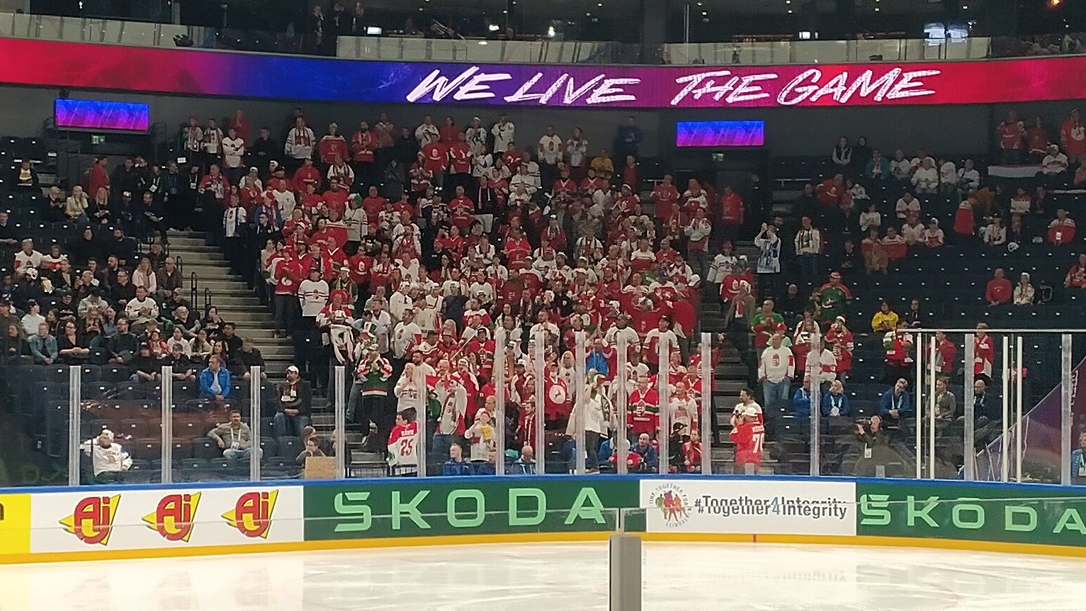 Tänään heti syötöillä!Ranska–Unkari-ottelussa melkein tyhjä halli, mutta yksi katsomolohko unkarilaisia pitää enemmän ääntä kuin 10 000 onnisultraa.