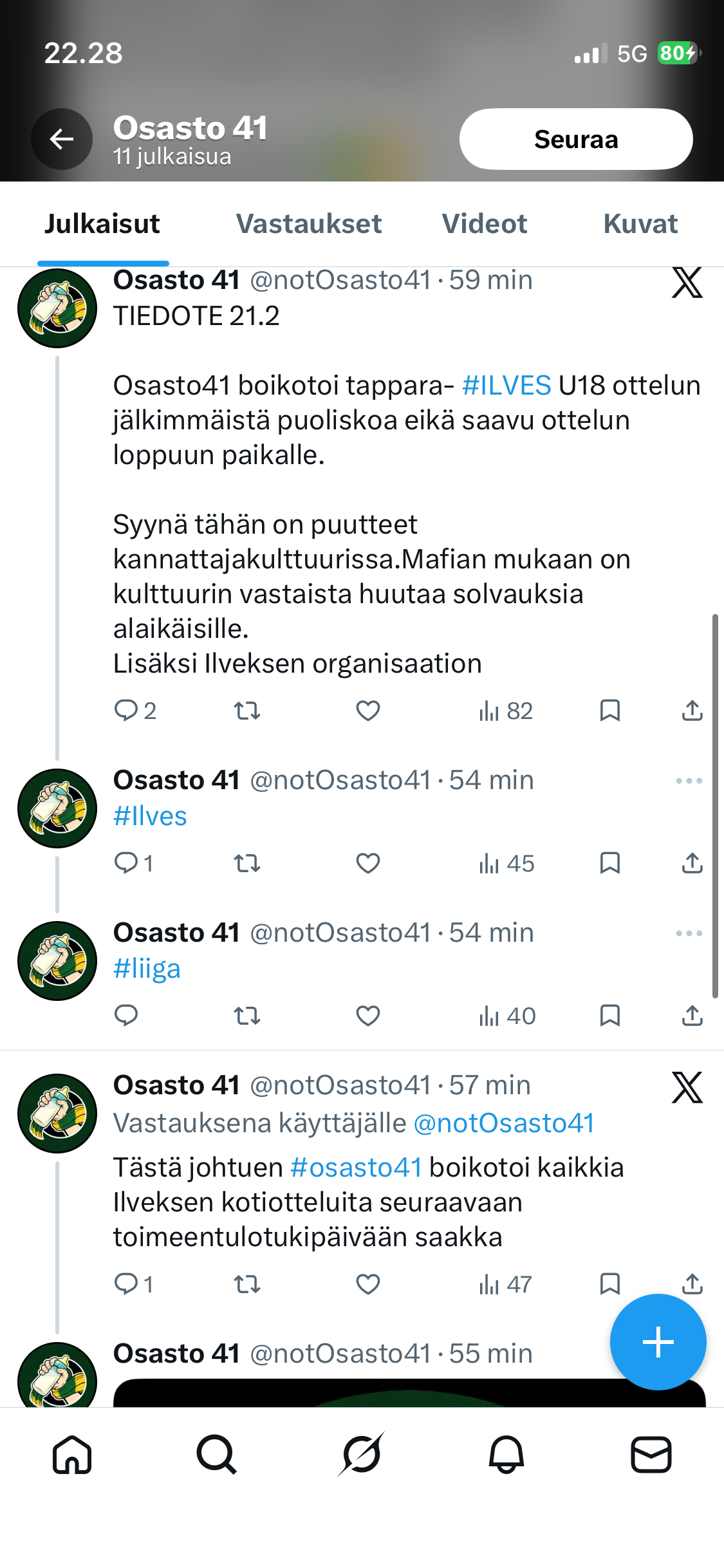 Eipä tosiaan ole Osaston viralliselta tililtä nuo twiitit lähetetty. Oliskohan näitä junnuosaston jäseniä sitten?katso liitettä 17394