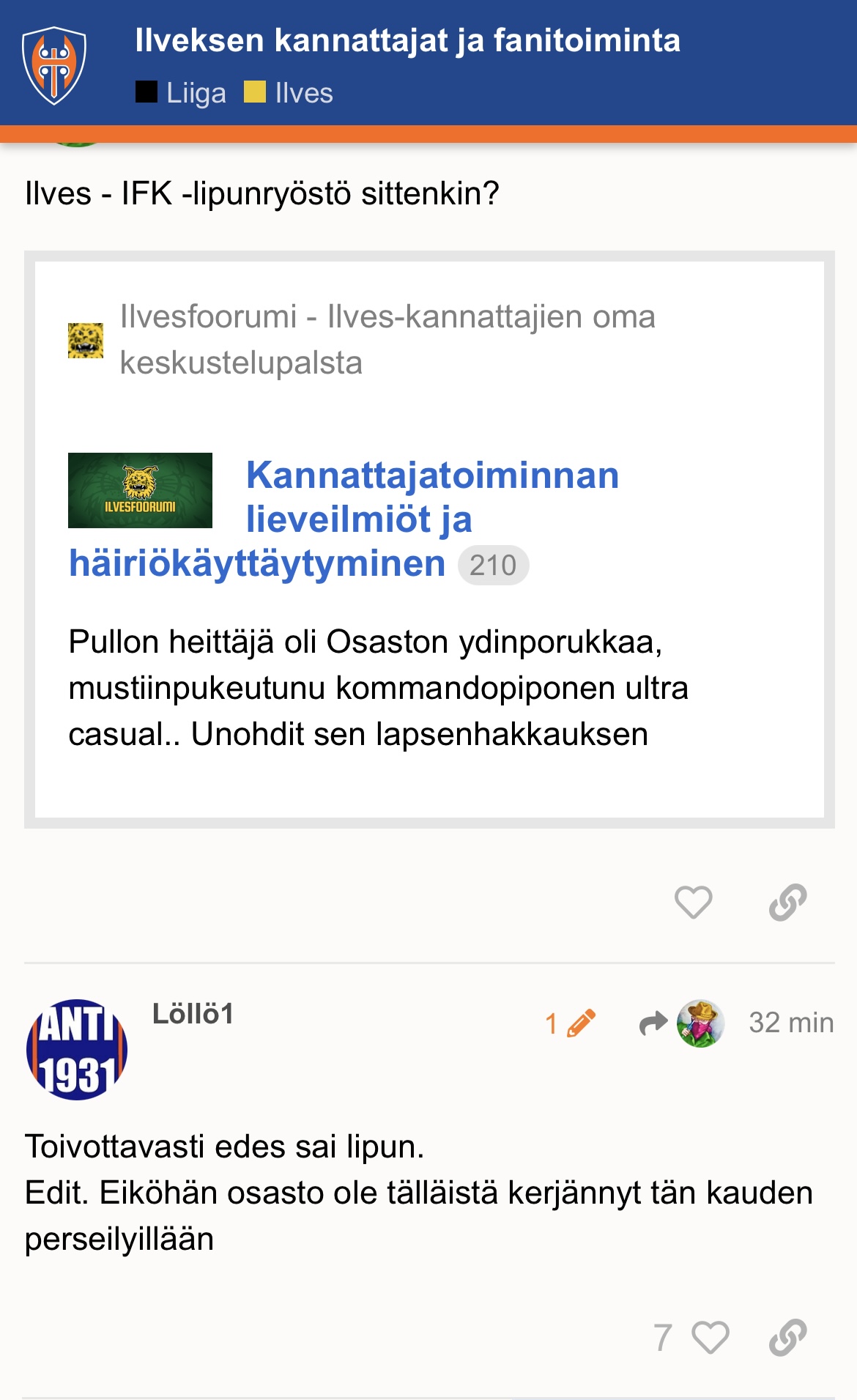 Niin noi pellethän ne taitaa olla just ne jotka koko ton yhteisön mainetta myrkyttää. Kai minunkin pitäisi oppia olla liittämättä noita "Kingien" äärioikeistolinkkejä muihin IFK-faneihin. Yleensä ovat kuitenkin ihan asiallista sakkia.