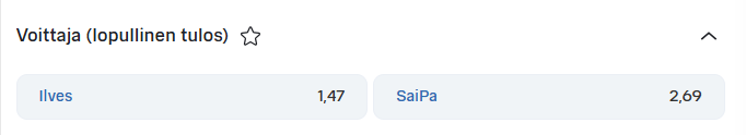 Aivan peruslinja Ilves-SaiPa-otteluun. Ilves on todella vahva kertoimenlaskijoilla.