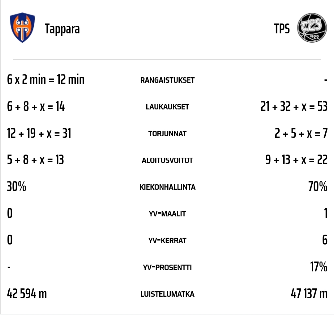 Kuvaa. naapurilla ollut pelissä kaksi maalipaikkaa ja molemmista maali. Muuten aivan yhtä päätyä.Xg Tampereella 0,89-2,45. Kuvaako pelin kuvaa? Ite oon seuraillut Lahen peliä.