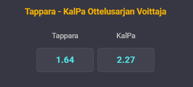 Itse liputan Pelikaanien puolesta ja toki Kalpakin käy olishan silloin pudottu mestareille.