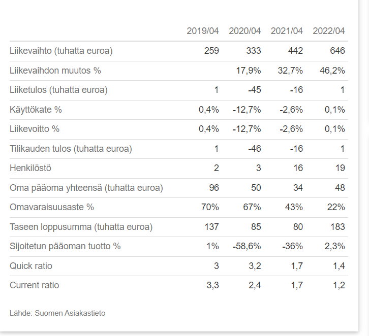 Tekee tekee. Start-upit paljon rumempiakin lukuja, mutta jos taseen loppusumma on pyörinyt välillä 90-180 k€ ja oma pääoma ei ole kertaakaan yltänyt edes 100 k€:n, niin kertoo se liigan osakkaille sen, että eivät tule hyväksymään mukaan.