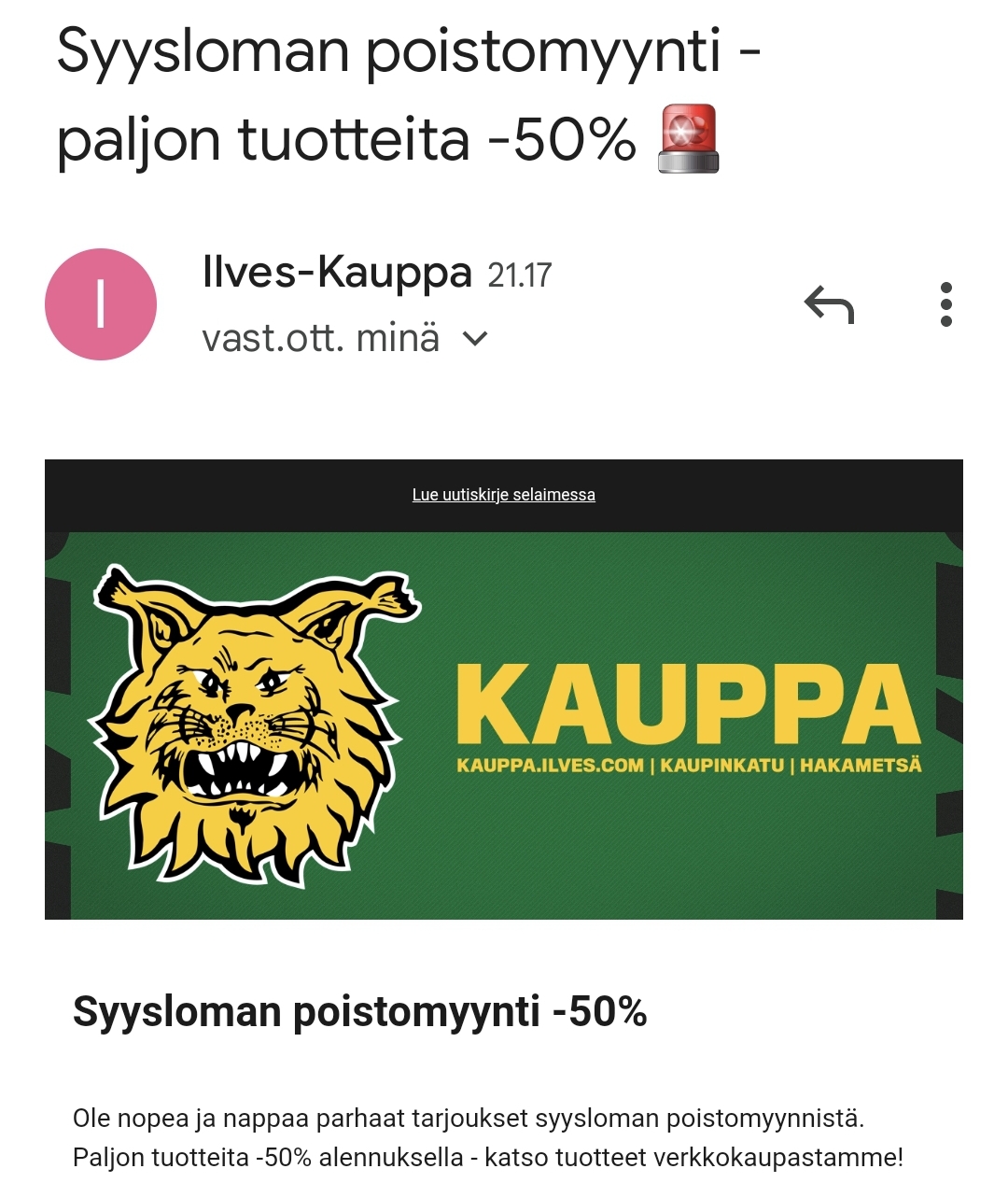 Minäkin laitoin satasen taas palaan ajatuksella "suora tuki seuralle eikä välikäsille". Etänä, kun vaatteiden istuvuus runkoon jää aina toiveajattelun tasolle.
