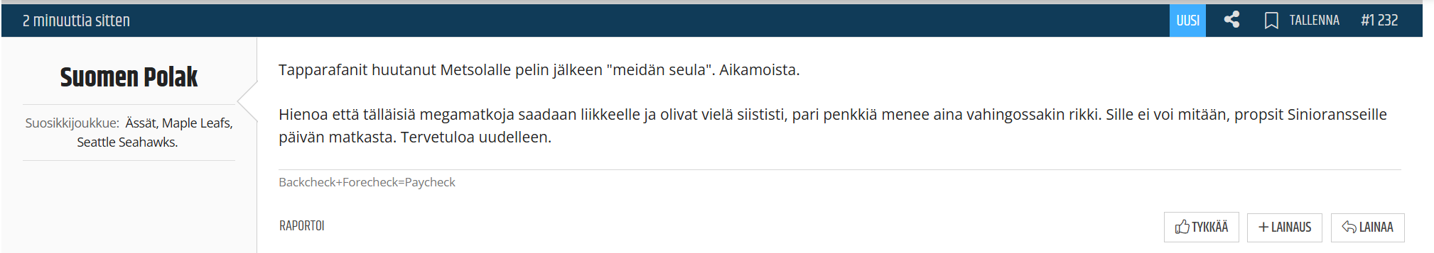 Annan ensimmäiset rispektini kun onssit järjestää itse moisen reissun johonkin muualle kuin turkuun (toimitusjohtaja ex mouho) joka vaatii järjestelyä, ja itse joidenkin muidenkin asioiden tekemistä, kuin katsomossa capoilun ja tifon tiimoilta.
