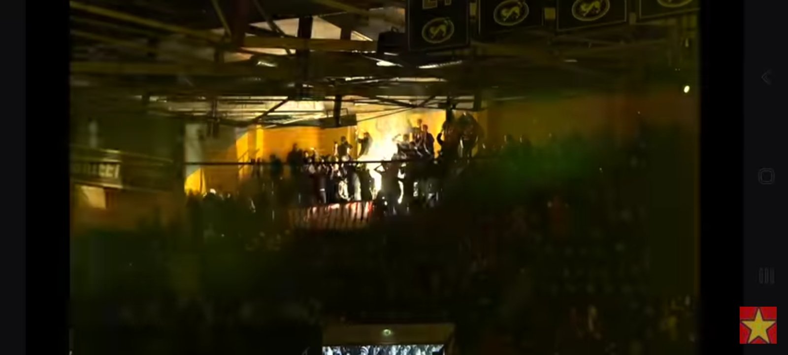 - Areenalla oli pieni palon alku, jonka syyksi todettiin vieraskannattajien katsomossa sytytetyt soihdut.