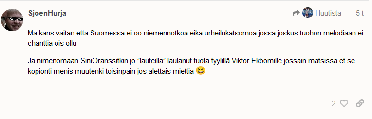 Tämä on loukkaus kannattaja- ja katsomokulttuurin käsitteille. Tuskin keksisin noinkin räikeää settiä kahden promillen humalassakaan.