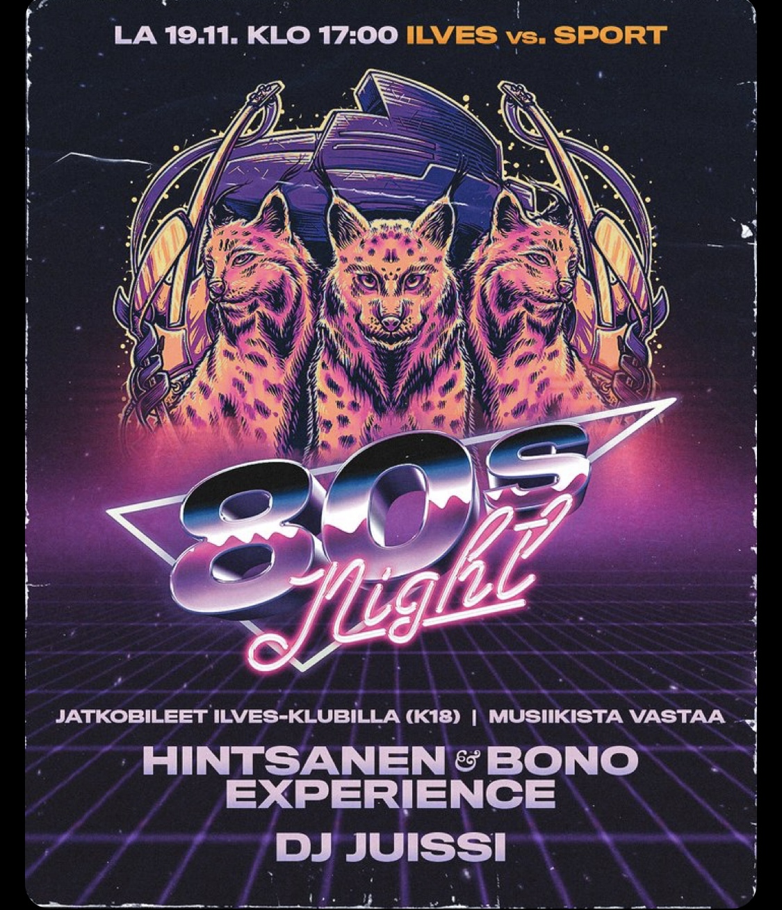 Tapparalla vähemmän yllättäen 80s night teemaottelu violetteineen taustoineen tulossa.