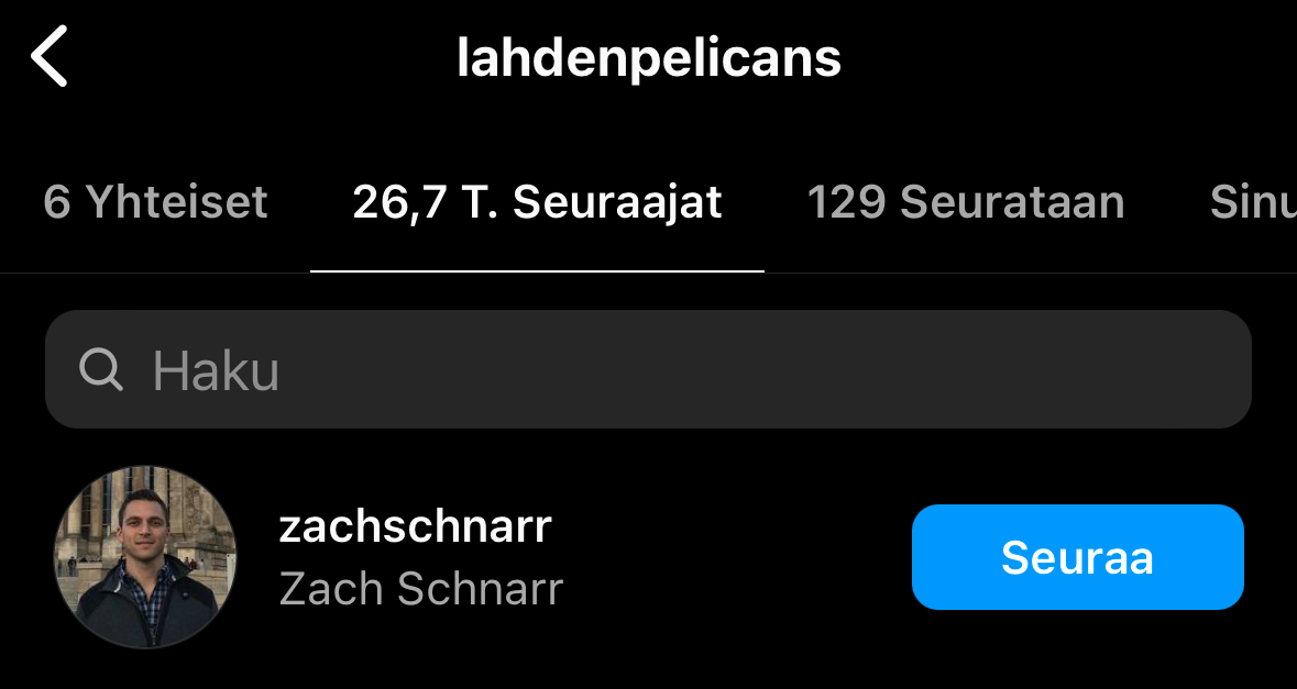 Poistanut nopeasti IG seuraamisen kun ei näy? JA foorumin mukaan siis vaimo tms alkanut seuraamaan Pelsuja IG:ssä muttei seuraajissa ainakaan näy