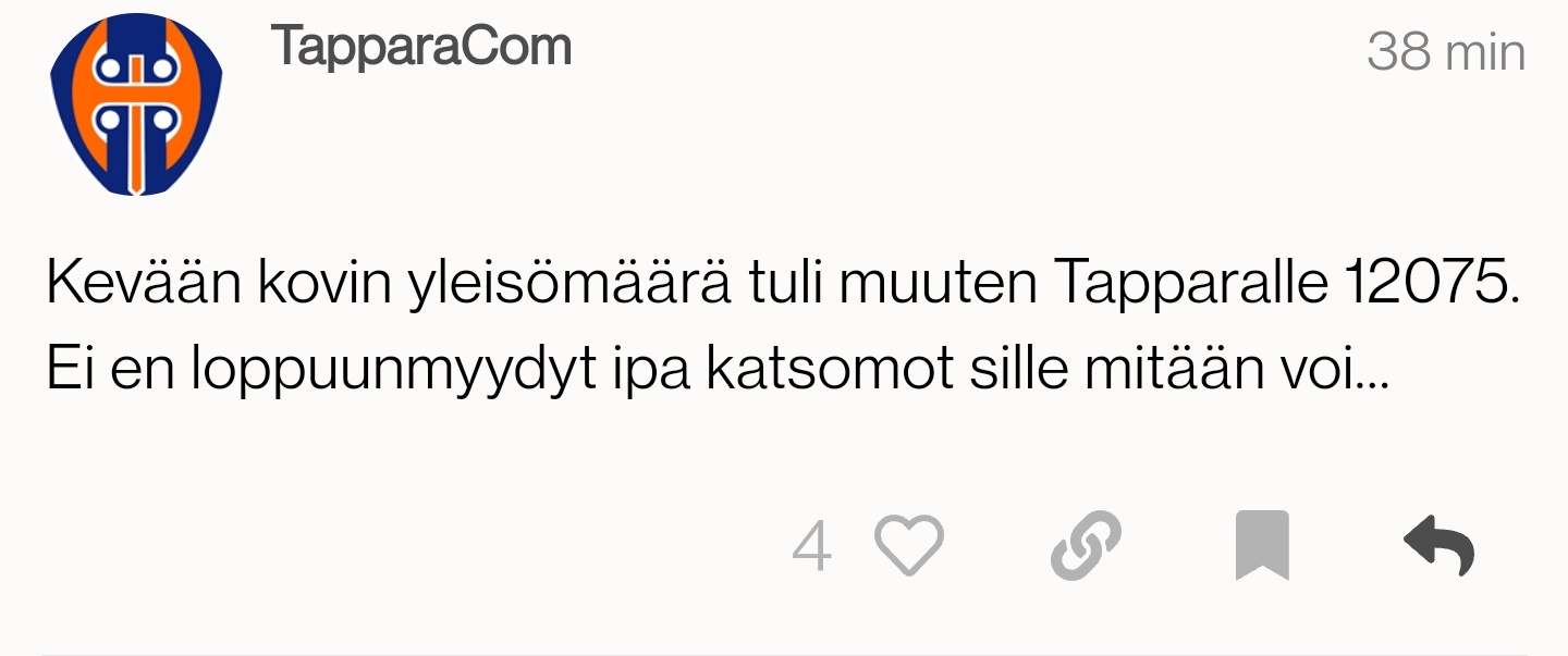 Joo ja jonkun mukaan tämä huuto vähättelee muita joukkueita.Minkä takia näillä menee näin huuruun tästä huudosta? Käykää nyt jumalauta joku kertomassa noille, että tottakai Ilves on ykkönen ja ainoa intohimo Ilvesläisille. On nää kyllä erikoista ja yksinkertaista sakkia.