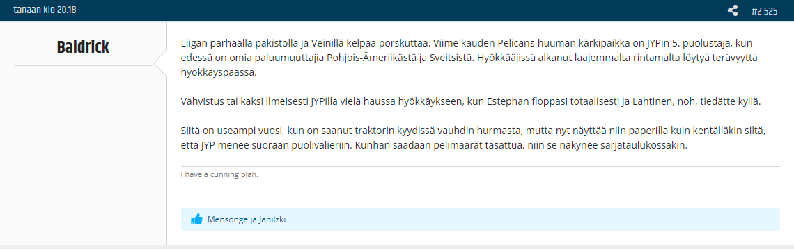Voi toki olla suuri värilasikirjo, mutta ei kyllä maistu tuo Jypin puolustus alkuunsakkaan.