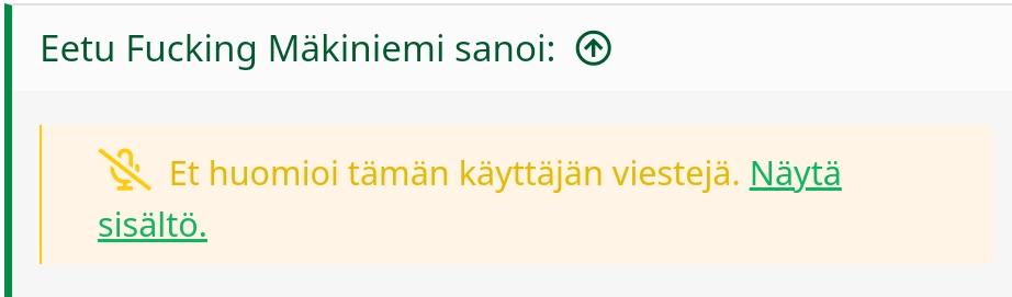 Taidan tehdä saman. Varmasti tulee foorumista lukukelpoisempi. Tuo on hyvä vinkki.@Eetu Fucking Mäkiniemi johan mää sulle tämän sanoin. En nyt taas jaksa sun juttuja lukea. Menisi turhaksi vänkäämiseksi ja kaikki ketjut täyttyis meidän väännöstä.