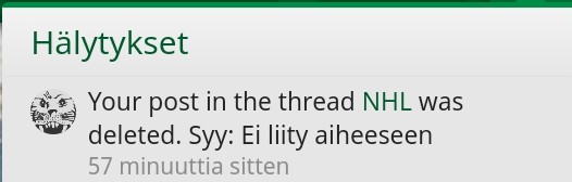 Vaikka en viestiäsi poistanut, niin kyseisessä hengentuotteessa ei ollut mitään mikä liittyisi koronaviruksen vaikutuksesta liigaan ja sen seuraamiseen.Taas sensuuri iskee.Ei muka liittyny liigaan no liittyhän se.Kuvottavaa tämä ylläpidon sensuuri.Kyllä Kim Jong Un kattoo kateellisena touhua.