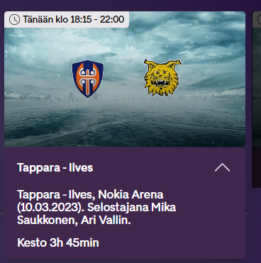 Ja meiltä ilmeisesti Suomi.Rauhala ja Savinainen ei pelaa tänään, Tuulola pelaa. Näin naapurin forkalla.