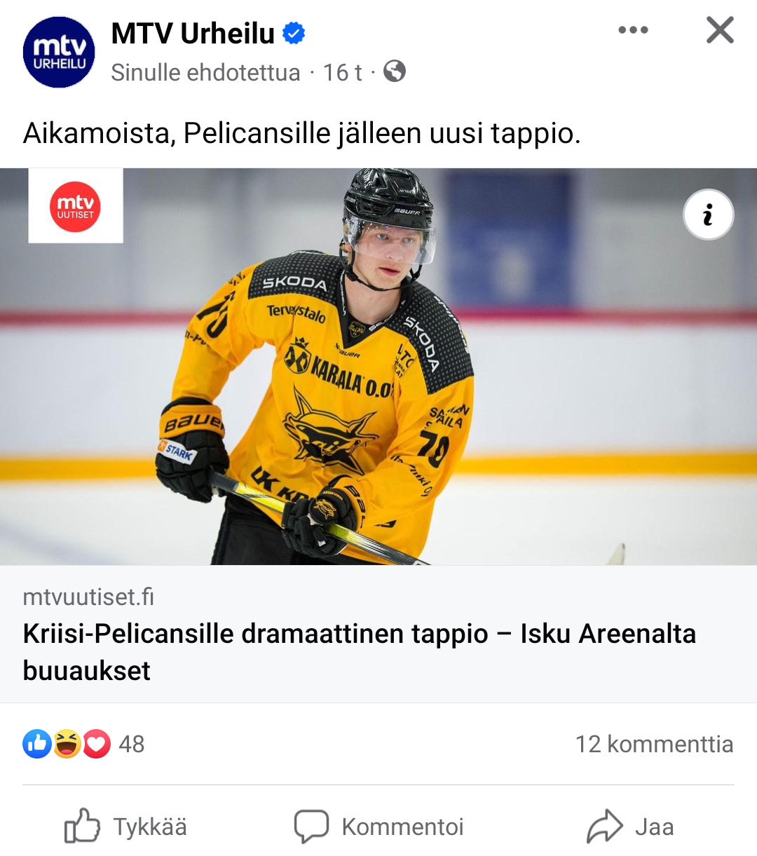 Mitä eiliseen tappioon tulee, niin ainoa harmitus on että hävittiin Kärpille, esim tappio Tps tms ei olisi nakertanut niin paljoa. Muuten saa olla täysin tyytyväinen kuluneeseen viikkoon Kookoo pelistä alkaen. Peli määrät on isoja ja ja treenit kovia määrällisesti (Makkosen mukaan) siinä sivussa. Olisi kyllä aika ihme ollut että Kärpistä olisi tullut 3p, koska alle vuorokausi aikaisemmin oli kova luistelukilpa aina vaikeaa Kalpaa vastaan, Kuopiosta kotiuduttu joskus yöllä, siittä sit nukkumaan tai koittaa nukkua hyvin, herätys joskus aamulla-aamupäivällä ja taas täys lataus pitäisi olla klo 18.30. Joten ymmärrän ihan täysin että tuosta ei tullut voittoa tällä kertaa.