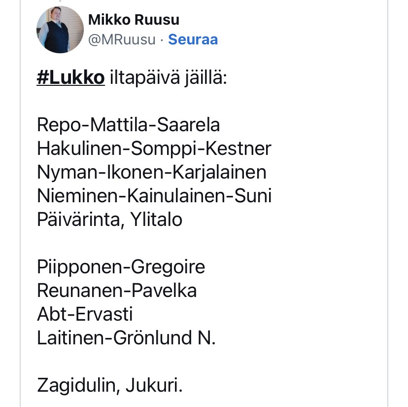 Siinä vielä jos jotakuta kiinnostaa Lukon ketjut tältä päivältä.