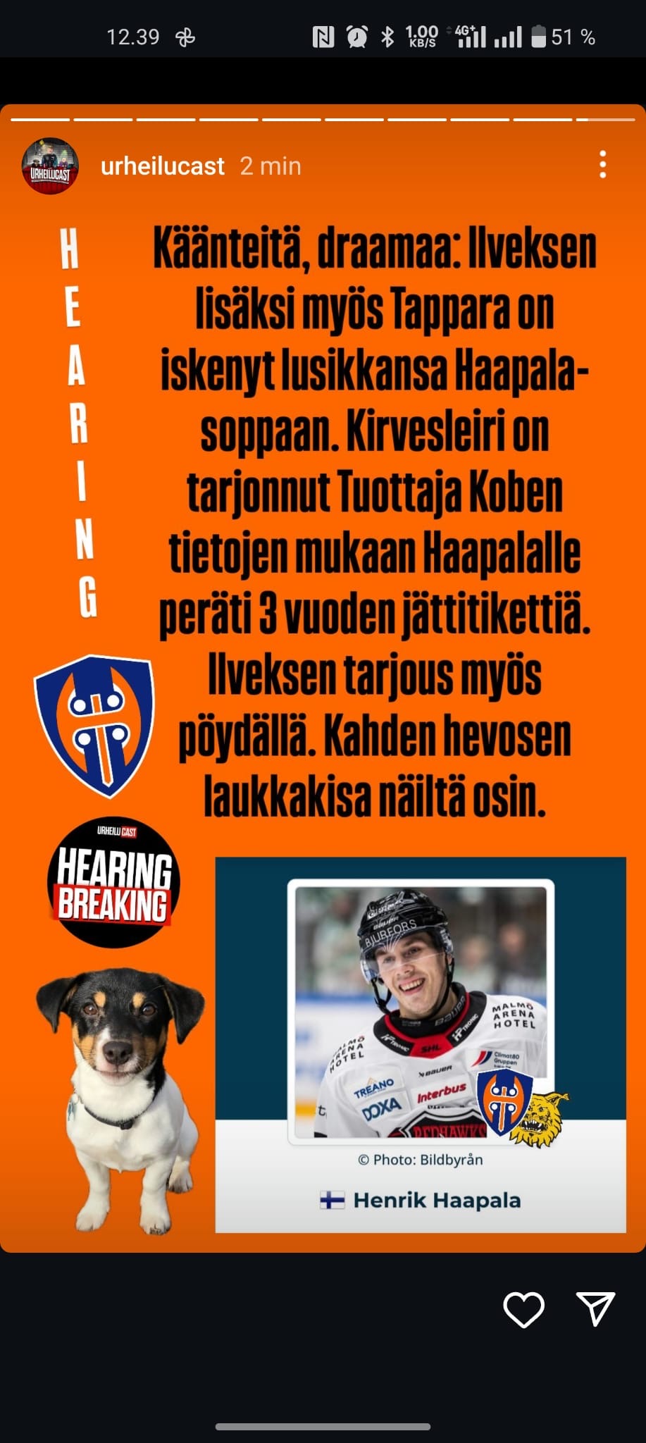 Eskon höpinöihin sen enempää kantaa ottamatta, mutta jos huhu Robyn lähdöstä pitää paikkansa, niin aika 1+1, että Tappara tarjonnut Haapalalle yhtä pitkää sopimusta, mikä Robyllä on tällä hetkellä Tapparaan