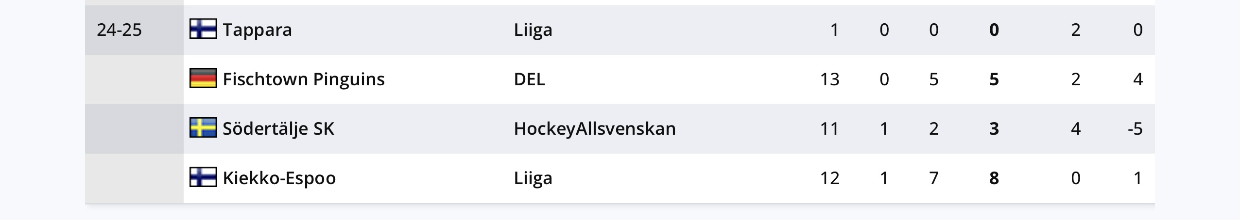 Sitten oli koko Eurooppa edessä ja parhaaksi yritykseksi jäi SHL:ssä 0,4p/p kausi 2018-19. Liigassa monta yritystä, selvästi paras 2017-18 Kookoossa. Sen jälkeen satunnaisia väläytyksiä ja koko 2020-luku mennyt Vaasa-DEL-CZE2-Tanska-Unkari alamäkeä lasketellen.