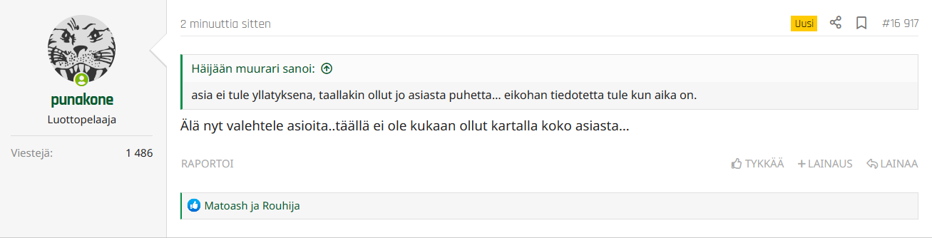 Jos näin kävisi, niin eiköhän punakoneen viesti olisi jotain muuta kun "Ilves joutuu kaupoille" scouttausketjuun ja eiköhän tästä muualtakin alkaisi kuulua aika vikkelään.