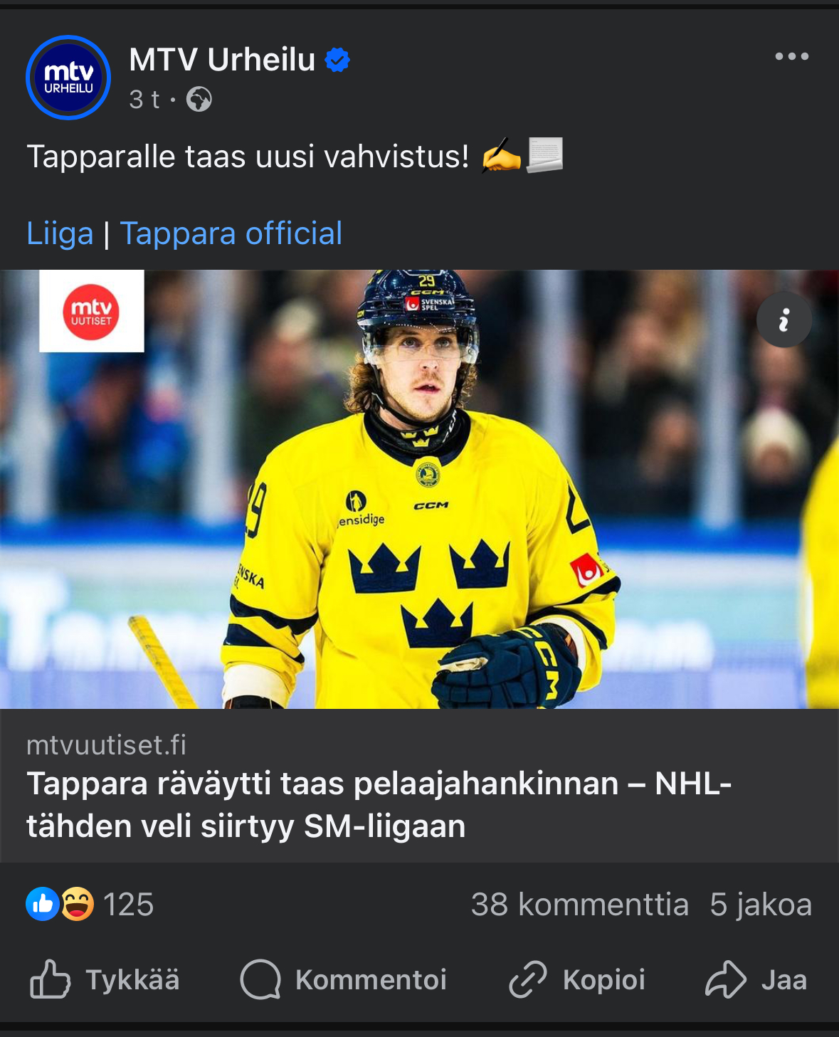 Ullatus.Aamulehti heitti jo "Tapparaan taas uusi tähtipelaaja" ja Iltalehti, joka heitti tuon outo hankinnan, "Entinen NHL-hyökkääjä siirtyy SM-liigaan"