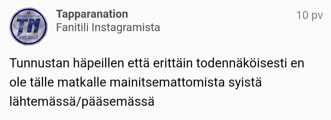 Tilanne on monen asian summa. Vika ei ole pelaajissa, valmennuksessa eikä maalivahtipelissä. Tapparan peli oli kunnossa ennen tautikierrettä. Kun alkuperäisestä mykoplasmasta oli selvitty, alkoi henkinen kriisi. Nyt iski vielä uusi loukkaantumissuma ja influenssa. Hip hei. Paskan määrä on ääretön. Taunuskin voi olla loppukauden korjaamolla.Edelleen tuo puolustuspeli on todella heikkoa. Ollut jo pitkään. Saivat reenatakin tässä helmikuussa runsaasti, mutta mitään kehitystä tuon suhteen ei tapahtunut. Mitä siellä on reenattu?