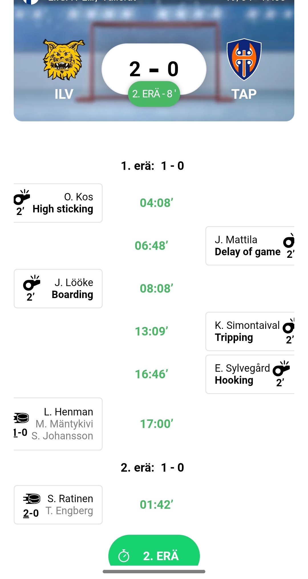 Tulosveikkaus ja otteluseuranta Ilves - Tappara 19.4.2026 | 2. Välierä