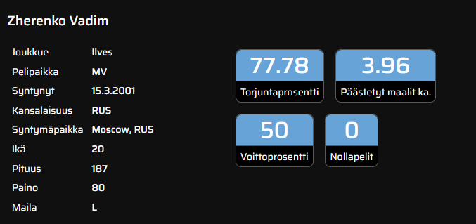 Lauantaina KalPa tulee Kuopiossa vastaan levättyään torstain ja perjantain, kun taas Ilves pelaa viikon kolmannen ottelunsa. KalPa on muutenkin yksi eniten laukovista (52 vetoa peliä kohti, joista 26 maalille) ja kiekkoa hallitsevimmista (57%) joukkueista, joten veikkaan tuossa pelissä Ilveksen olevan aika vahvasti puolustuskannalla ja meidän molarin olevan melkoisessa kiekkosateessa (jos vaan KalPan sihti kohdillaan). Eilisen perusteella en välttämättä luottaisi Zerenkoon (vielä) tuollaisessa paikassa. Seuraava vieraspeli onkin vasta 7.10 Vaasassa, jolloin debyytti olisi venynyt aika pitkälle, jos sitä siis vieraspeliin olisi pitänyt säästää.