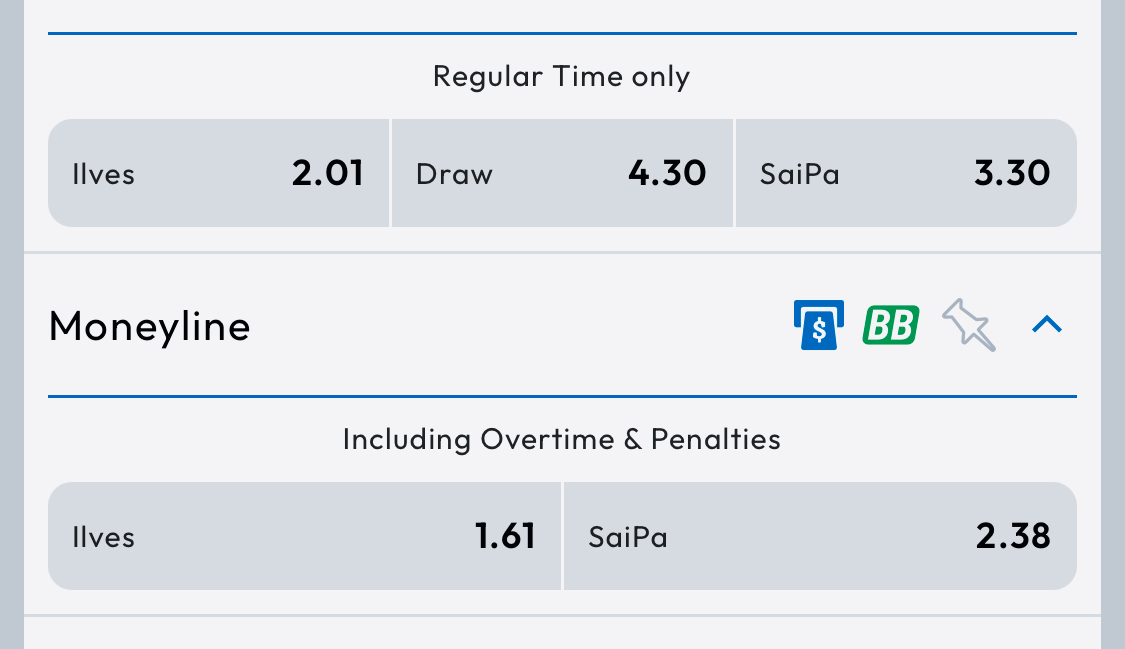 SaiPan puolelta voin sanoa sen verran, että olen kauden aikana lyönyt heidän maalintekijöistään n. 20 vetoa, joista 0 on osunut. Otan tuolta varmaan vielä Karvisen ja Kalaputaan, jos tarjolla on jotakuinkin järkevää kerrointa. Ilvekseltä varmaan Mäntykivi ja Lööke pääsee peleille.